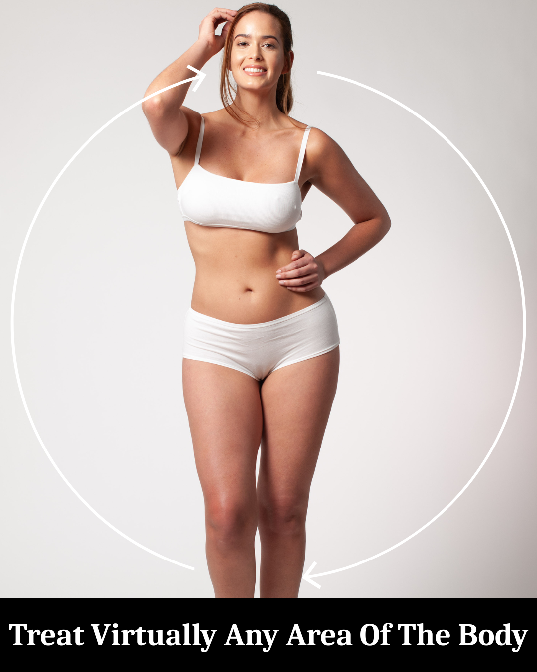 This Exilis Ultra can be used to treat virtually any area of the body. Commonly treated areas include the abdomen, arms, bra line, flanks, hips, thighs, & knees.